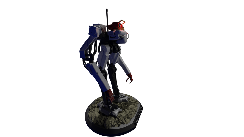 VASCO's design is based on a standard, "Type A" bi-pedal chassis. He is capable of traversing rough terrain with all the survival gear and payload capacity needed for extended overland journeys. VASCO does have defensive capabilities, but his primary role is peaceful.