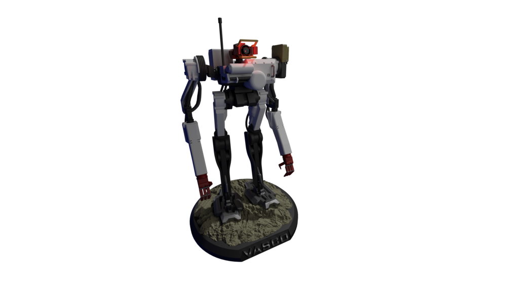 VASCO's design is based on a standard, "Type A" bi-pedal chassis. He is capable of traversing rough terrain with all the survival gear and payload capacity needed for extended overland journeys. VASCO does have defensive capabilities, but his primary role is peaceful.